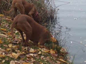 Když jsme došli k jezeru, všichni – i dvounožci - špinaví jako prasátka, holky měly takovou žízeň, že se všechny vrhly packama do vody a pily a pily. Holt po běhu je velká žíža.
